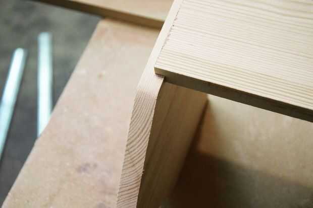 Con una broca recta, corte un rebajo de 1/4 de pulgada 1/4 de pulgada profunda alrededor de la pieza del fondo, así como en los extremos de los lados. Marca la altura de los lados de los extremos, corte la misma barbilla a la línea.