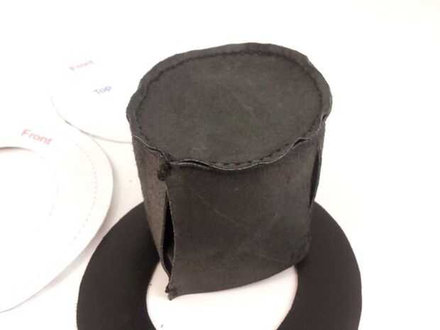 -Un pequeño cuero tophat (en construcción) basado en el diseño hermoso de Tom Banwell. Pensé que haría una versión pequeña para mi niña en primer lugar, como práctica. Pero apuesto a que hace la versión de tamaño completa en realidad sería más fácil...