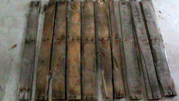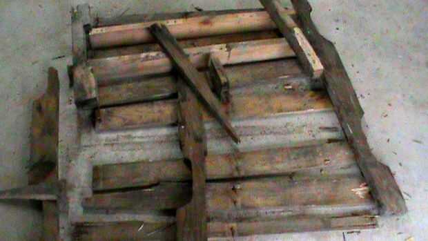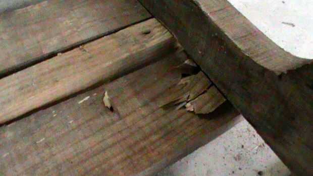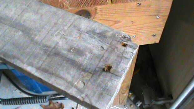 - (fotos 13-21) Procedieron a Libra/martillo las juntas hacia fuera con el martillo/mazo (dependiendo de la condición de la Junta) en movimiento el 2 x 4 después de cada junta fue golpeado hacia fuera hasta que todas las tablas fueron golpeadas hacia fuera.