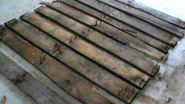 - (cuadro 4-8) Para la curiosos parte usé el mazo y el wonderbar. Martillado en debajo del tablero en el extremo que parece funcionar mejor. Encomendó hasta sólo un poco en un momento donde cada placa fue clavado hacia abajo para mantener la Junta de la división lo menos posible. Repetí el proceso hasta que todas las tablas de un lado estaban apagados. (cuadros 9 y 10)