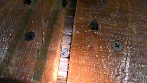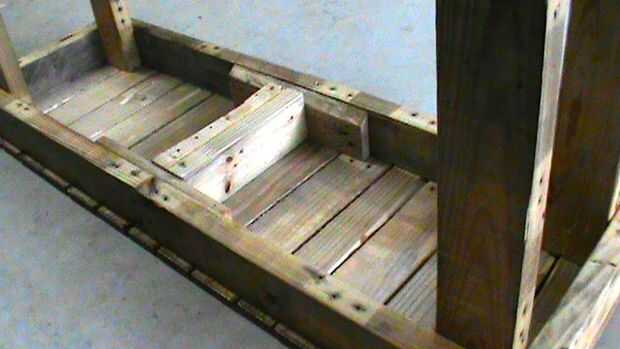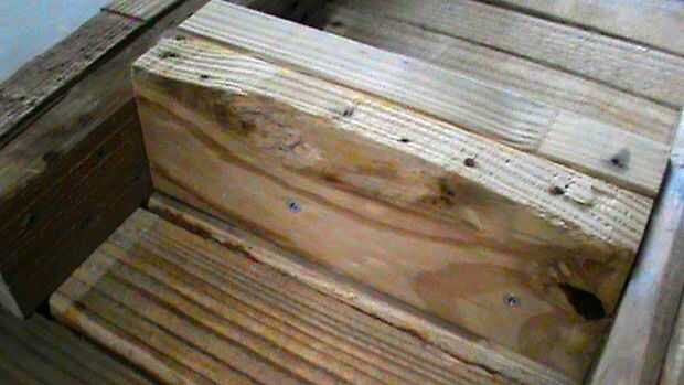 Tomé dos 2x4s y había fijada en una abrazadera de tubo. Luego que atornillar un tablero en ambos 2x4s (cuadros 12-14). Entonces atornillado dos tornillos de 3" en ángulos, uno en la parte inferior (imagen 19) y uno en la parte superior (cuadro 20).