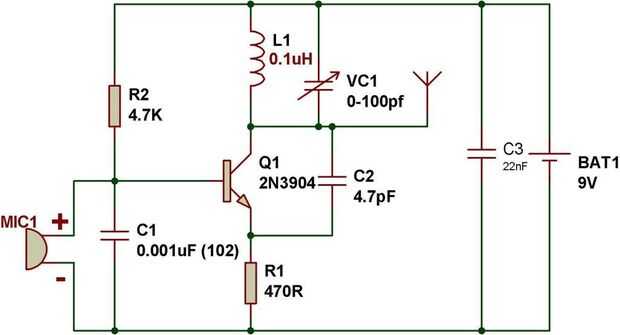 Siguiendo el diagrama de circuito hacer el circuito en un pequeño trozo de PCB. Añadir el clip de 9v y la antena y listo. Añadir la batería de 9v y prueba con la radio de FM de su teléfono o con un receptor de FM. Si no tratan de obras modificar la posición de la antena hasta que usted conseguirá el chanell.