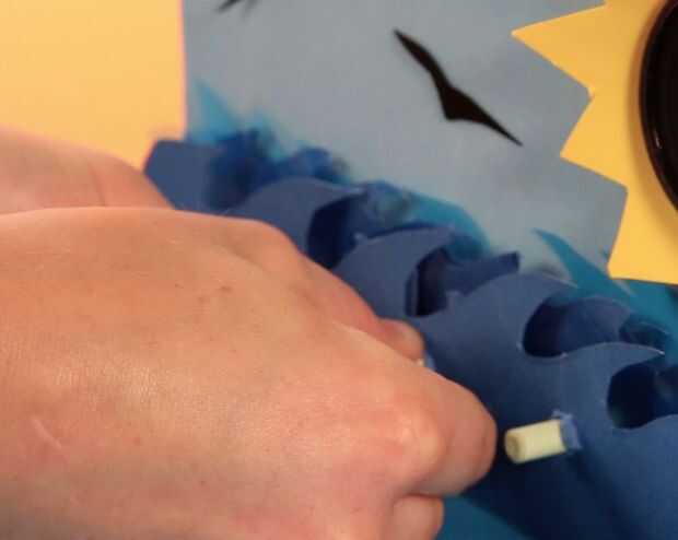 2. pegar un fondo de color sobre la cartulina y añadir un sol alrededor de su agujero del altavoz.
