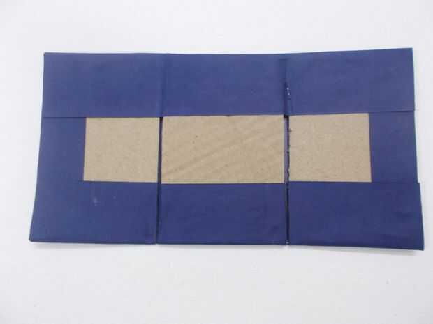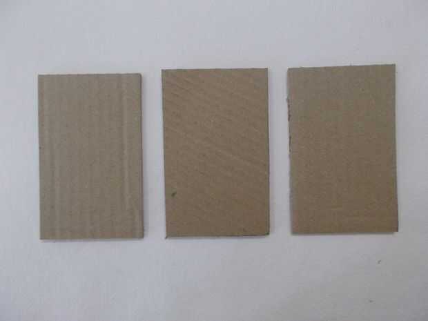 Tomar 3 piezas de cartón y unirse a ellos alineados entre sí con la ayuda de una cinta de doble cara.
