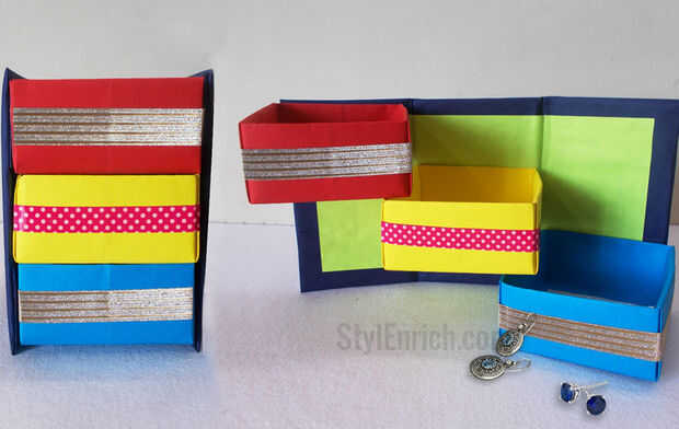 Ahora disfrutar de una vida libre de desorden y mantener y encontrar cosas en el lugar correcto! Aprender y ver un completo tutorial paso a paso sobre cómo hacer este Colorido DIY Origami estantes y olvidar la molestia de buscar tus cosas en un cajón el desorden de su escritorio!