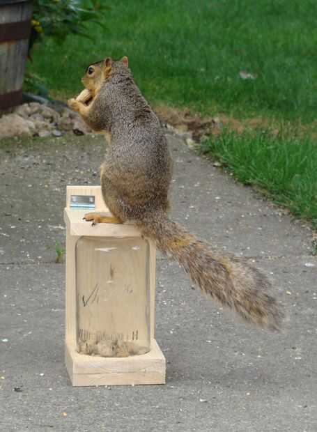 Más patio trasero alimentadores centran en intentar mantener las ardillas del alpiste. Tuve el problema contrario. Cada vez que le puse cacahuetes hacia fuera para las ardillas, los pájaros rápidamente llevaría todo a perder. Así que construí este comedero de ardilla prueba.