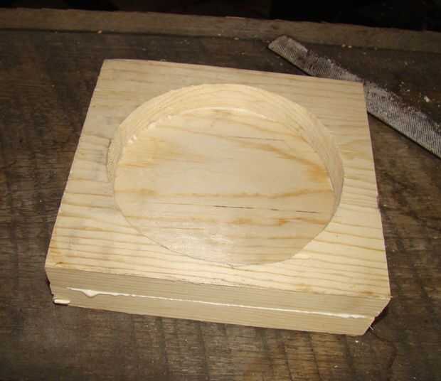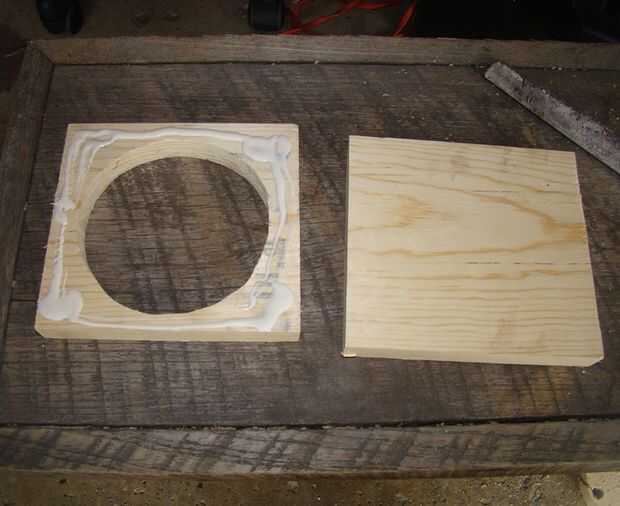 La sólida base de seis pulgadas y la pieza con el orificio grande se pegan para formar el fondo del comedero.