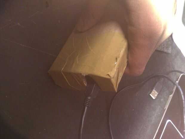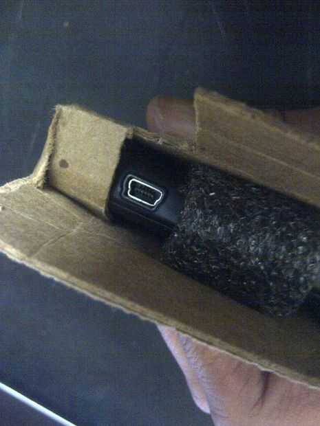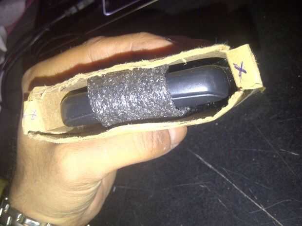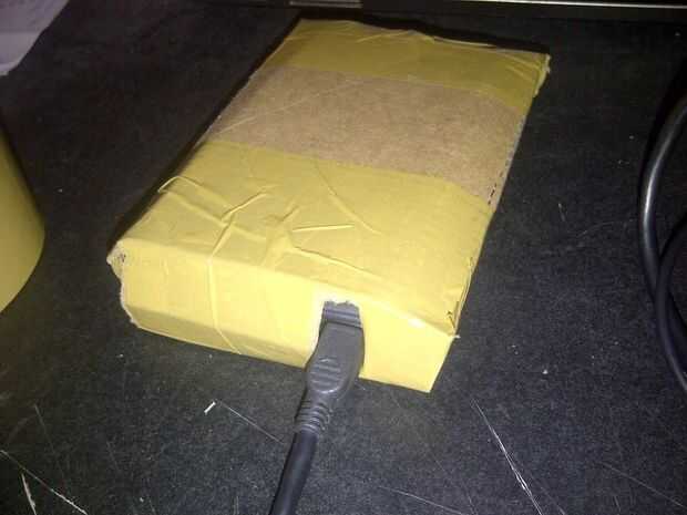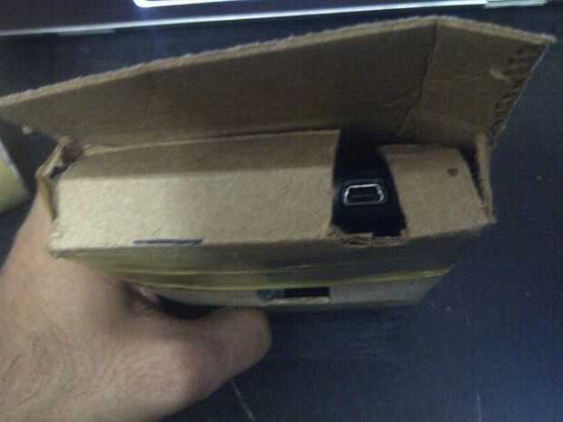Después de agregar la espuma hacia el lado del puerto USB del disco duro, doblar la cartulina como se muestra en la imagen y cintas para arriba.