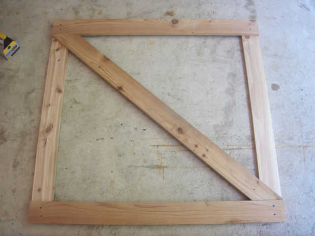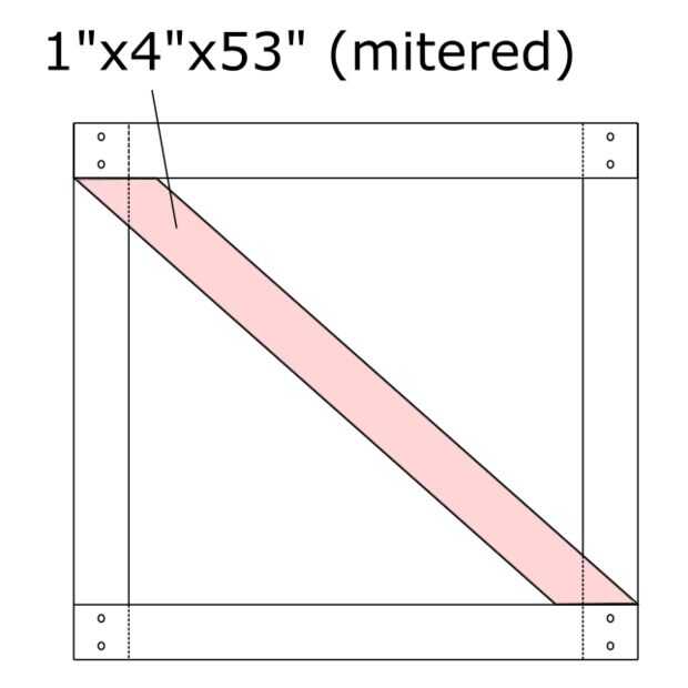 • Tomar uno de los 53" 1x4s y colóquelo diagonalmente a través el marco cuadrado.