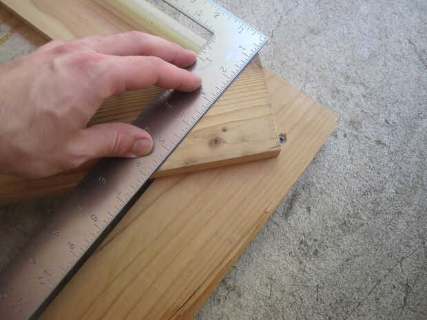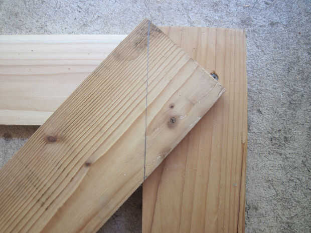 • Corte a lo largo de las dos líneas, y debe tener una pieza diagonal que encaja en el marco - en la parte superior 39" piezas, enjuague con 41" piezas. No atorníllelo en su lugar todavía!