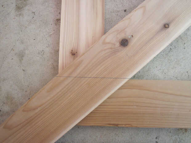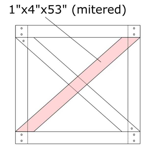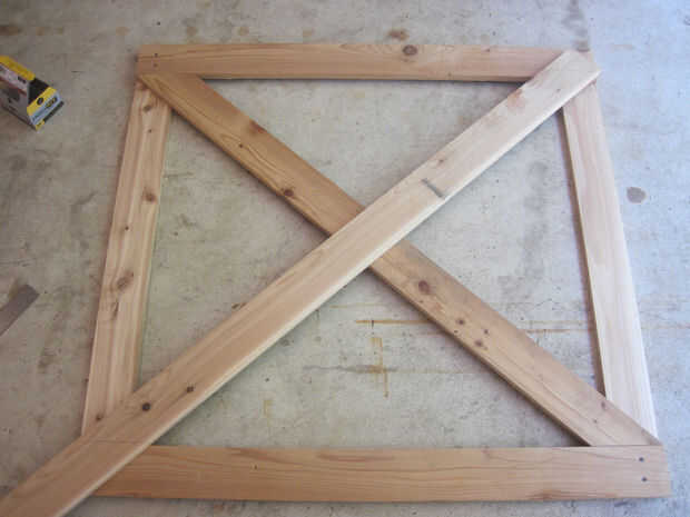 Repita el proceso desde el paso anterior con un segundo 53" pieza diagonal, formando una"X". Si no tienes las herramientas para hacer la vuelta conjunta (siguiente paso), puede omitir este paso y hacer una puerta con una sola diagonal.