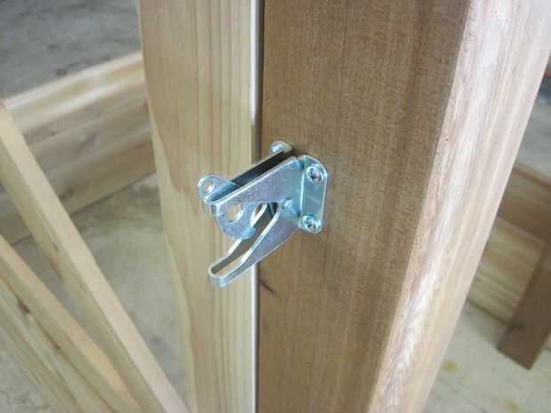 Importante: dependiendo de donde se coloca la cama de jardín, puede que desee esperar hasta que esté en lugar para hacer esto. Toda la trama es bastante débil en la torsión. Por lo tanto, si colocar los pestillos de la puerta mientras que está sentado sobre una superficie perfectamente nivelada, entonces mover a una superficie de nivel así que no, podría no alinear ya. Aprendí la manera dura la primera vez.
