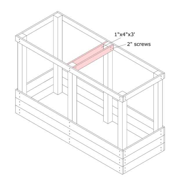 • Pretaladre agujeros y atornillar en su lugar. Otra vez, usé tornillos de 2" en todas las conexiones de 1 x 4.