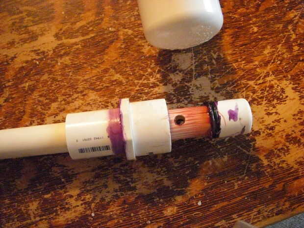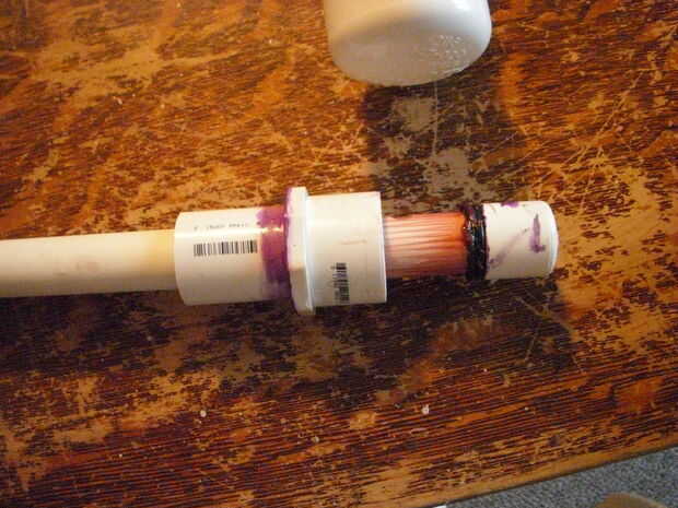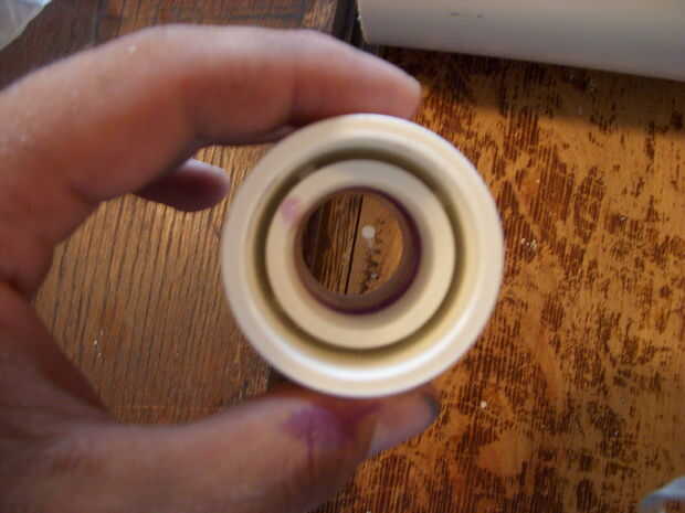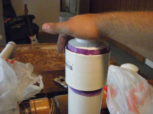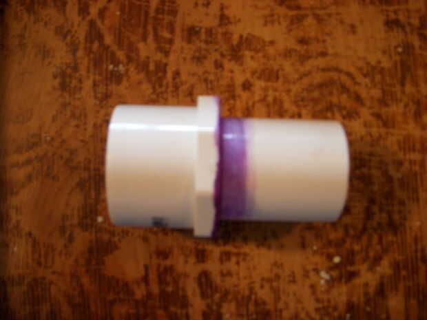 Ahora prime y pegamento en 1 cap 1 a la tubería. Medir 1,5 en de la tapa y perfore un agujero directamente a través de la 1 en tubo. Tome su junta tórica y deslice hacia abajo en 1 la pipa hasta que cumpla el 1 en tapa.