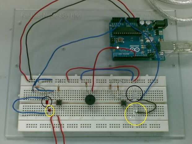 En cuanto a la sensibilidad, el LED rojo iba a ganar manos hacia abajo. Blanca luz consiste en rayos de amplio espectro y la longitud de onda es indetectable por el LED rojo a menos que se pone muy muy de cerca. Con el LED rojo, la distancia entre el transmisor y el receptor para la detección exitosa puede ser mayor. Sin embargo, debemos poner en cuenta que el ruido proveniente de la atmósfera era sin duda una gran desventaja ya que el experimento se realizó con luz fluorescente. Este problema fue resuelto parcialmente por calibración posible valores recibidos antes de escribir los valores de umbral de ambos sensores. Su muy simple. Las funciones de altavoz piezoeléctrico para mostrar el final de la transmisión y el Arduino comenzará detección ambas entradas otra vez.