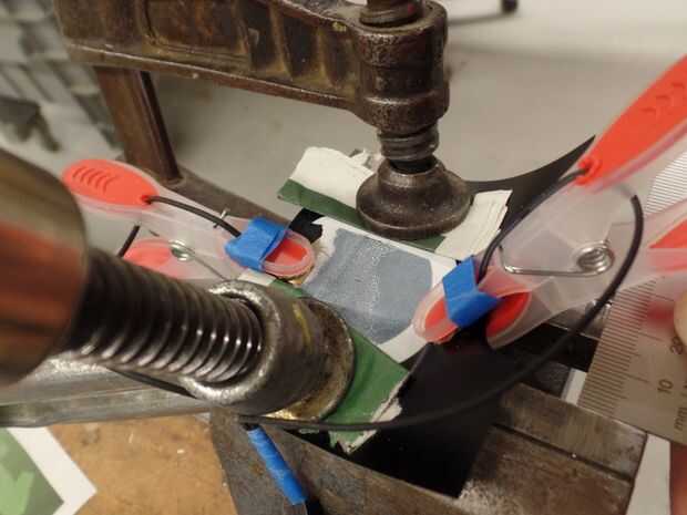 Apaga las luces, encienda la fuente de alimentación, iniciar la grabación con la cámara y abra lentamente la mordaza de mesa. La muestra se estira lentamente hasta un punto donde comenzará a agrietarse y dejar de trabajar. Cuando la muestra detiene emitiendo luz puede detener la grabación.