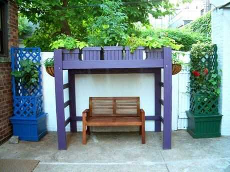 En lugar de tener jardineras en las esquinas de los higos y uvas personalizados hechos lo suficientemente altos como para mantener a Mookie hacia fuera, podría añadirse enrejado alrededor de los bordes. Estas demasiado pintar colores brillantes añadiendo un elemento dinámico y modelado a la zona.