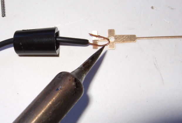 6 Haz un extremo del alambre de corte y ponerlo es a través del agujero en la parte superior del casquillo tan el alambre en el interior.