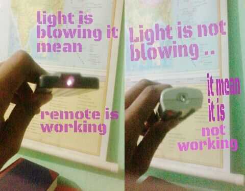 Después de hacer todo lo que usted verá que cuando el control remoto no está funcionando los hombres en Mostrar la luz no parpadea o brillo pero cuando el control remoto en buenas condiciones entonces la luz parpadeará...???