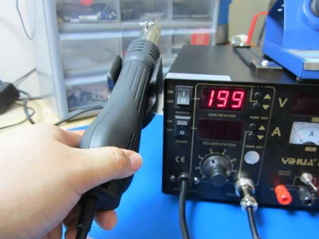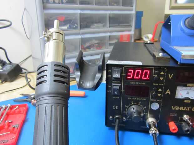 Otra vez, con esto, temperatura que el aire se encuentra en es controlada por arriba/abajo teclas de flecha junto a la ventana de visualización. Hay dos características muy bien con esto, cuando recoja la pistola de aire caliente, rampas hasta la temperatura de su objetivo rápidamente. Pero cuando más cerca de la estación y en el soporte de la pistola de aire, rampas hasta 0 por lo que no está soplando aire caliente.
