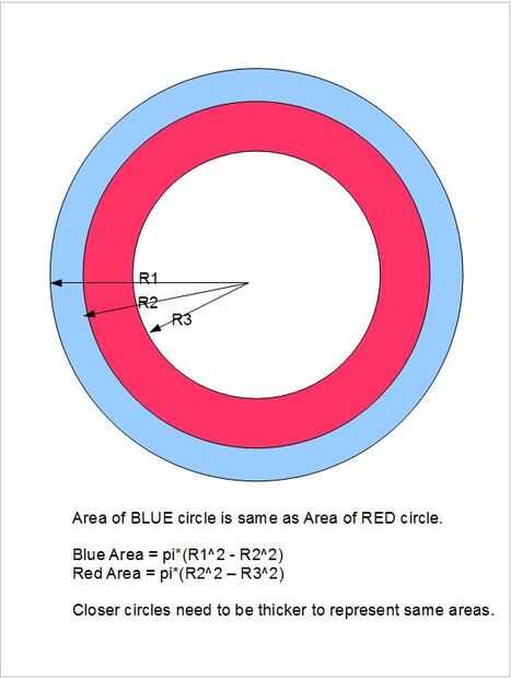 Para construir una máscara de couder empezamos por decidir las dimensiones exteriores de R1 y R2. Luego calculamos R3 para que los círculos expuestos representan áreas iguales del espejo. Seguimos para R4, R5... y así sucesivamente hasta llegar al centro del espejo, más o menos. Los centros de espejos newtonianos en la sombra del espejo secundario y realmente no aportan mucha luz.