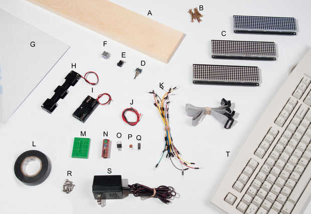Tres 8 x 32 de matriz de puntos LED pantallas de Sure Electronics (C). $12,90 ea. http://www.sureelectronics.net/goods.php?id=1118