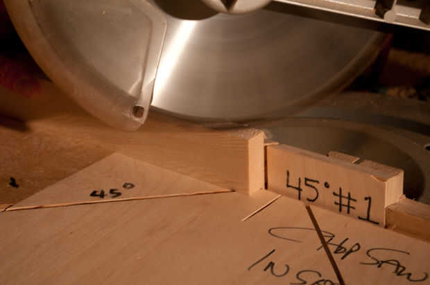 Utilice una tronzadora o sierra manual para cortar un ángulo de 45° en un extremo de cada pieza, orientado para que el corte va en diagonal a través de la estrecha superficie de la Junta. Desde el lado interior del ángulo de corte, mide 18 1/4" y hace un ángulo de 45° el corte. Ambos cortes deben ángulo hacia fuera de la longitud medida. Repita en el segundo tablero. Estos serán los dos lados largos del marco.