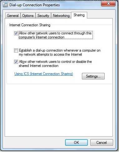 Paso 1: Instalación ICS (Internet conexión compartir) en el equipo con acceso telefónico a redes.