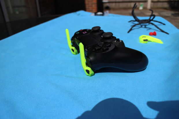 El soporte que utiliza para levantar el mando de PS4 durante el uso fue el Breffo Spiderpodium.