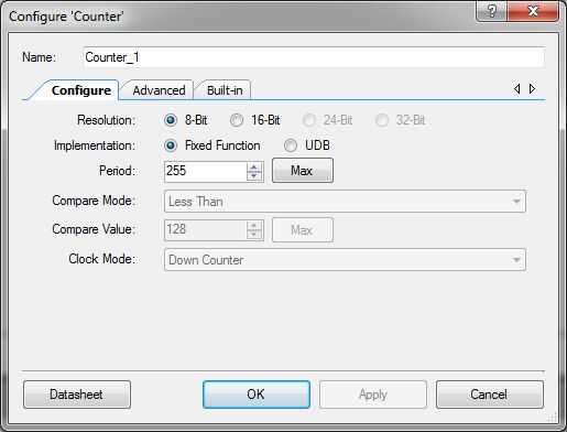 En este pequeño proyecto de nuestro ahora van a usar este, el más simple de contadores que simplemente cuentan el número de relojes dado y al pasar de 255 dará una señal en el tc de salida así que lo único que queremos hacer aquí es darle un nuevo nombre, permite sólo deshacerse de la "_1" y llamarlo "Contador". Y pulse OK para ya terminamos con configurarlo.