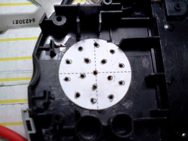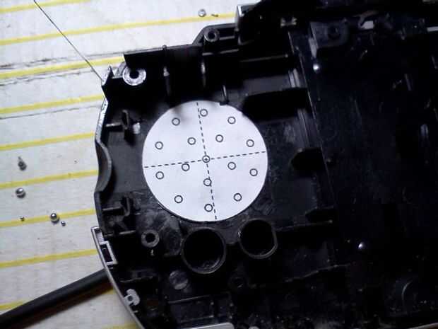 Pegar la plantilla a la PSP con un pegamento ligero (barato barra pegamento a mi me funcionado), distancia del taladro y retire la plantilla.