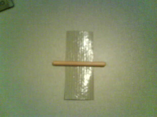 Para evitar de caer alrededor dentro de la bahía UMD, dañar el mecanismo, he añadido una pieza de 50 mm de ducttape, 20 mm de ancho. Coloque el palo en la mitad de la cinta y Envuélvala alrededor. Recortar los bordes, para asegurarse de que no es nada pegajoso.