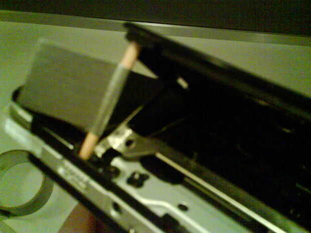 Para guardarla, lugar en el tronco del UMD, asegurándose de que el ducttape bajo el marco del metal al cerrar la tapa.