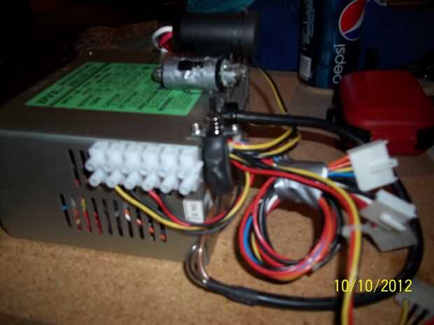 Corte un cable amarillo de la fuente de alimentación y lo tira.