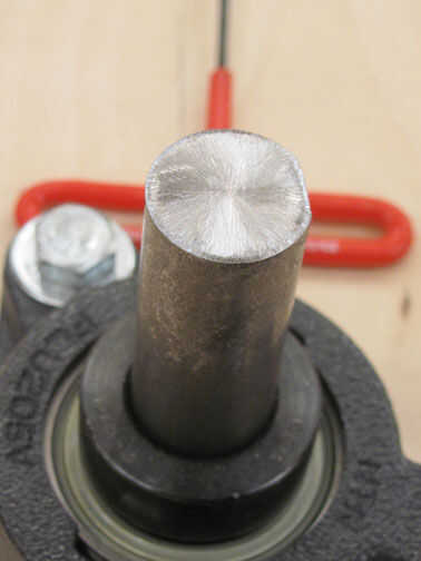 FiF (jaja, demostración de Chappelle) he añadido del bloque de almohadilla rodamientos a la parte superior e inferior de la superficie de trabajo sobre el agujero para el eje. Usé el eje para nivelar los cojinetes del bloque de almohadilla como se realiza con tornillos.