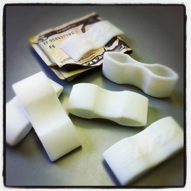 es el clip del dinero plástico llamado "Es dinero". He diseñado en Solidworks, pasé mucho tiempo perfeccionando las aberturas por lo que podría llevar a cabo un solo dólar, así como un montón de dólares. Actualmente les imprimir en una máquina de prototipado rápido de dimensión de capas de plástico. Yo les seguí regalando tan decidido debo hacerlos mis tarjetas. Ahora tengo 3 diseños diferentes, uno es claro, uno tiene mi logo de equipo de carreras y otro con mis datos.
