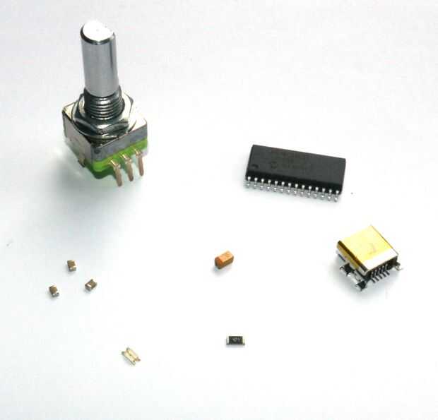 Qty Value Package Parts Description 3 100nF 0805 C1, C2, C3 Ceramic capacitor SMT 1 4.7uF SMC_A C4 Tantalum capacitor SMT 1 470 1206 R1 Resistor SMT 1 ACTIVITY 1206 D1 LED (any color) SMT 1 EC12E_SW SW1 ALPS rotary Encoder EC12E series with switch 1 MIKROPROG JP1 5x1 Pin header (right angle) 1 PIC18F25K50 SOIC IC1 PIC 18F25K50 microcontroller SMT 1 PICKIT JP2 6x1 Pin header (right angle) 1 USB-MINIB-5PIN JP3 Mini-USB Type B socket SMT