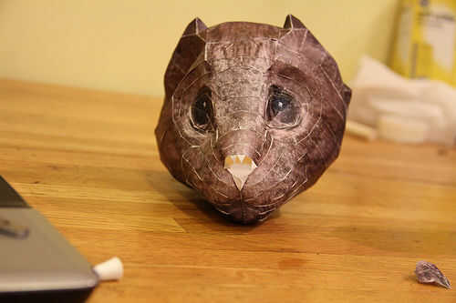 ¿Por cierto, sabes lo que fue realmente divertido? Varias veces cuando yo estaba construyendo, gente en la oficina venga y pregunte lo que era. No tenían idea. Wilgubeast vino la más cercana llamándolo una "máscara" pero no fue hasta que finalmente había unido a la base cuando era evidente.