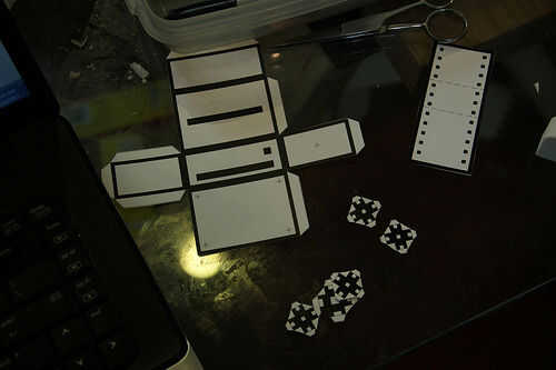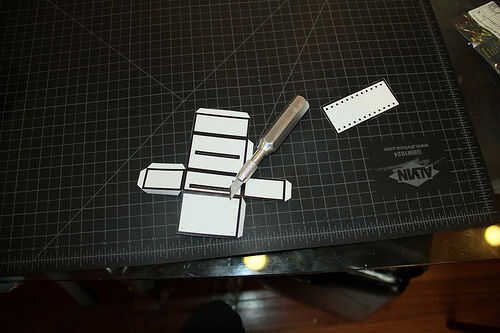El modelo para esto viene de feed de Flickr extensa de Papel Continuou: http://www.flickr.com/photos/papelcontinuo/44633014/ es un modelo simple pero increíblemente lindo y debe tomar cualquier papercrafter calificado sólo 5-10 minutos. Es bastante mucho todos los cubos geométricos (rombo!) y es bastante simples plazas. La parte difícil sólo parcialmente es la boca, ya que tienes que usar un cuchillo Xacto lindo en boca y parte superior del cuerpo para avanzar el papel a través de. Sugiero esta sección de corte y alimentación de papel a través de antes de que pegue el cuerpo-que hará su trabajo mucho más fácil.