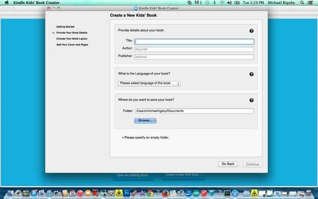 Elegir "Crear nuevo libro", luego completar el título, el nombre del autor y el idioma para que el libro está escrito.