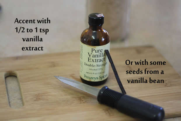 * Vainilla va muy bien con chocolate. Añadir algunos (1/2 a 1 cucharadita) de extracto o dividir una de vainilla y añadir las semillas como cocinar el budín.