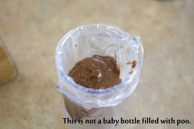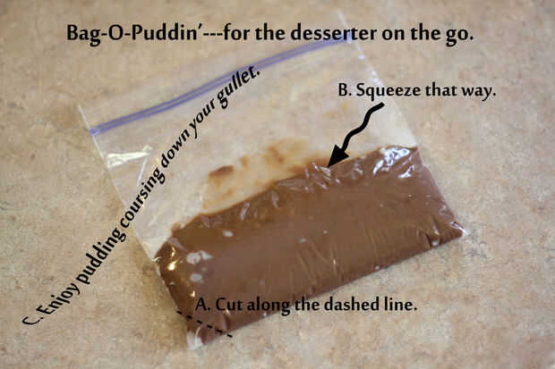 5. corte abra una esquina y exprimir todo ese lío puddingy en su gob.