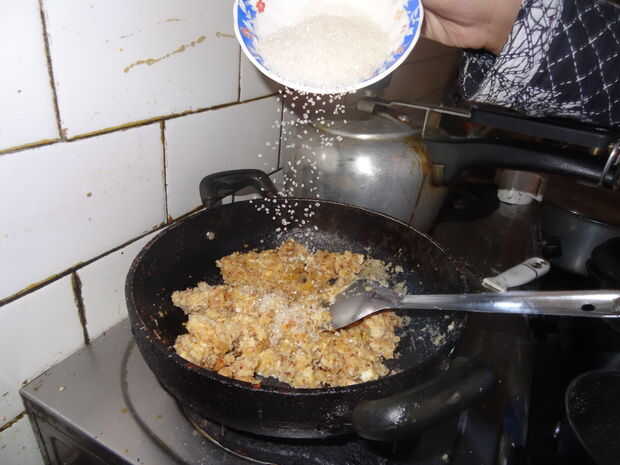 Añadir azúcar para servir en el pan molido. También añadir algunos cardamomo para obtener un olor fresco