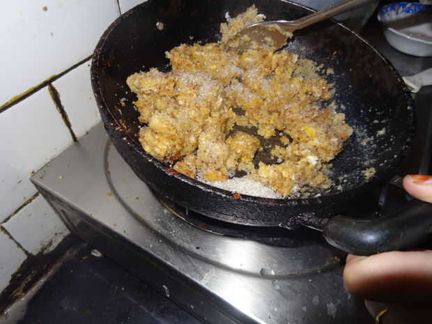 Pudding(Halwa) de pan-huevo de 15 minutos. (6 / 7 paso)