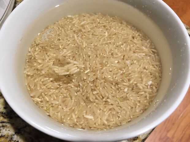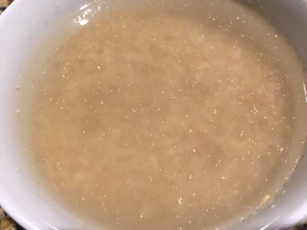 Colocar el arroz en un recipiente grande y llenarlo con agua. Verás que está nublado (como en la primera foto), así que querrás que el agua fuera de la descarga. Repita el proceso de llenar el recipiente con agua, moviéndola alrededor con la mano y descarga el agua hacia fuera hasta que el agua es clara (como en la segunda foto). Luego Vierta el agua hacia fuera y dejar el arroz en el recipiente por ahora.