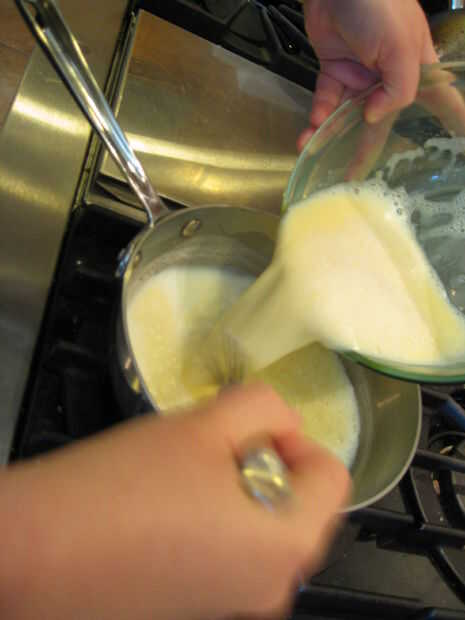 Al principio el pudín será diluida y acuosa. Mantener revolviendo.