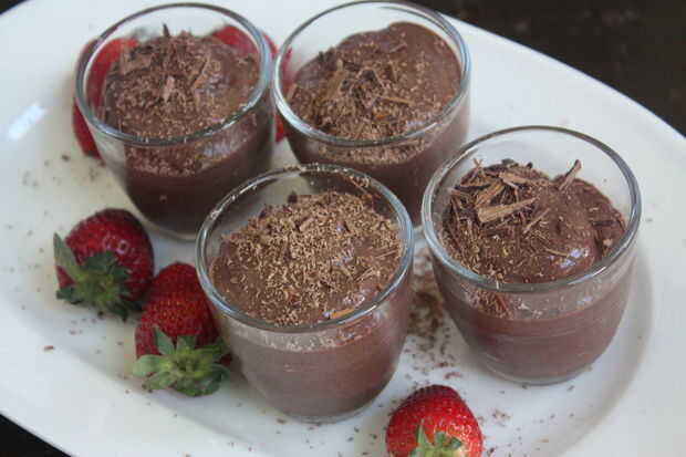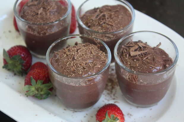 Después de la semilla de chía ha empapado en leche de coco, agregar a la licuadora la 1/2 taza restante de leche de coco, fechas, cacao en polvo, extracto de vainilla, polvo de café y mar la sal. Mezcla, poco a poco aumentando la velocidad hasta que la mezcla quede lisa y la chia y fechas han sido procesadas, unos 3 minutos de la mezcla total. Mezcla de la cuchara hacia fuera en deseado número de platos y refrigerar hasta que se enfríe, aproximadamente 45 minutos. Servir con fresas frescas o por cuenta propia y disfrutar!