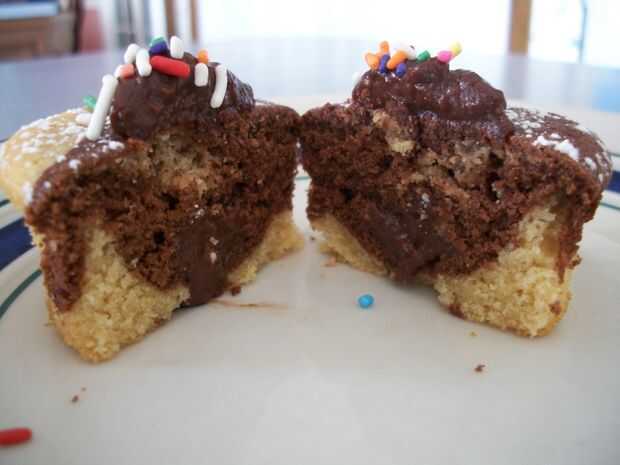 hice para mis hijos (y mi hija, demasiado - no puede dejar a nadie!) y estaban ALL GONE en 20 minutos me pone sobre la mesa. Super fácil de hacer, super delicioso y super lindo cuando corte una mitad!Ingredientes:1 paquete de mezcla de pastel, chocol