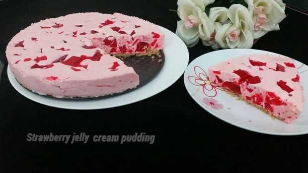 vencer azotes pdr con leche fría hasta mullidas números picos luego añadan crema de fresa, leche condensada, gelatina derretida y mezcla bien thn agregan gelatina en cubos n.just un mixn verterla por encima de la galleta base n refrigerar por 2 horas