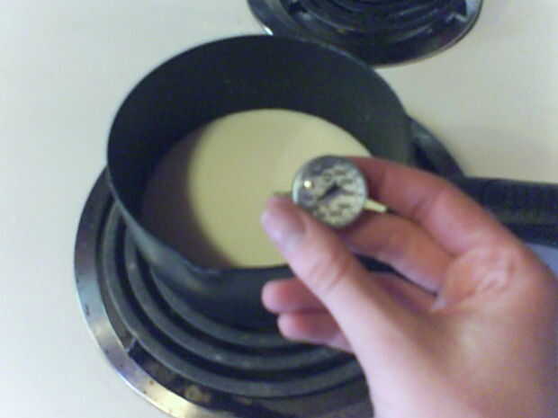 decidí calentar la leche y miel en un cazo a fuego medio bajo revolviendo con frecuencia, también puede utilizar el microondas sobre un minuto y medio. La leche debe alcanzar entre 140-170